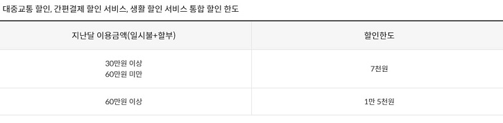 ** 간편결제를 통한 해외거래 및 교통카드 이용금액은 할인에서 제외됩니다.
