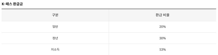 • K-패스 사업의 상세 내용은 K-패스 앱/홈페이지(korea-pass.kr)에서 확인 가능합니다.